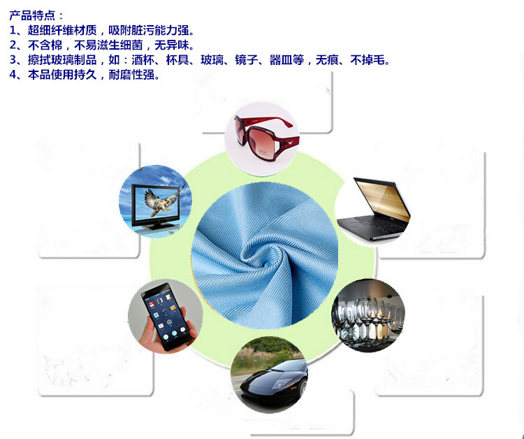 特点:适用于家居清洁,不锈钢,玻璃,镜面等的清理,不掉毛,不留痕迹